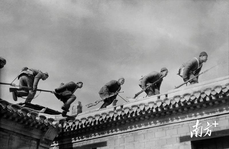 △1943年,冀中,游击队员从地道转入房上战斗工事。石少华 摄