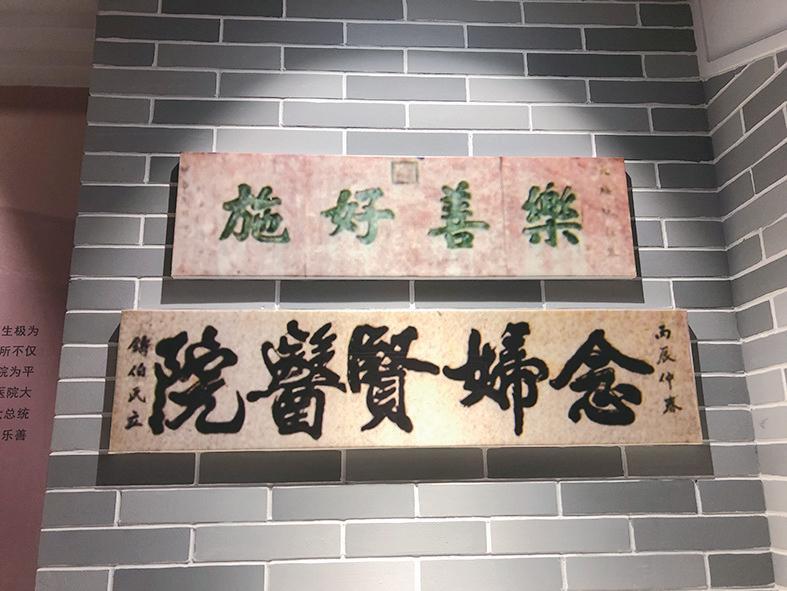 ▲“乐善好施”牌匾与刘铸伯手书“念妇贤医院”。