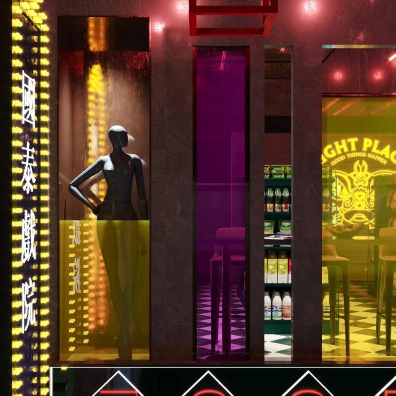 炫目的霓虹色调、各种充满未来感的光束线条让人仿佛置身异星,通过这样的视觉效果它成功地抓取了你的眼球。这不是一种噱头,更不是一种装修风格。它有属于自己的名字——cyberpunk(赛博朋克)。
