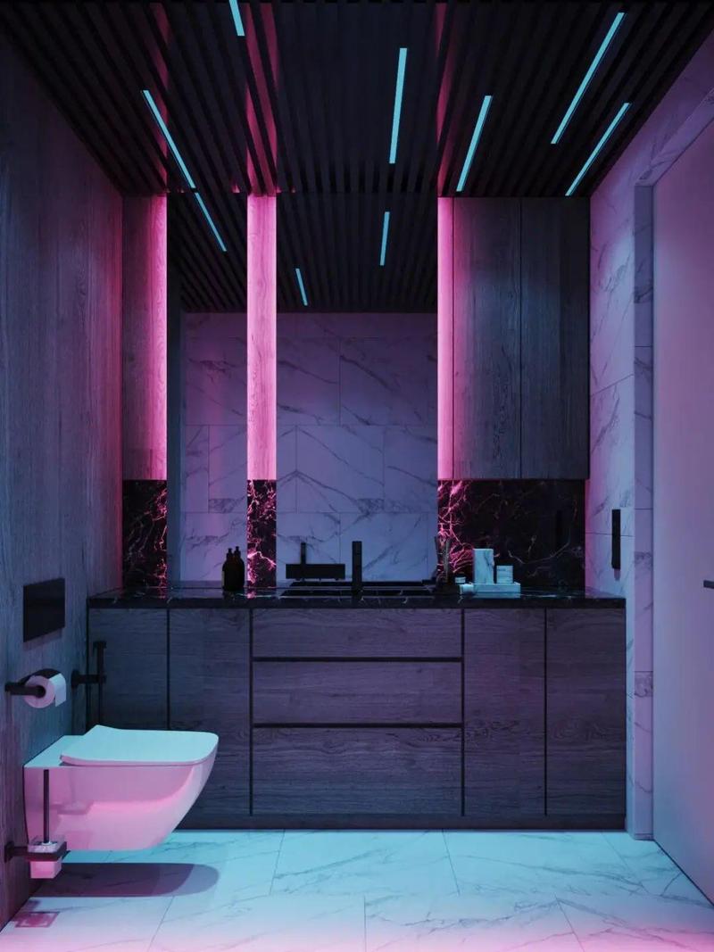 除此之外,有条件的小伙伴们还可以设置RGB 轨道灯条,让整个室内空间,特别是在夜晚,瞬间赛博朋克风附体。尤其是在红光下,整个空间的氛围,神秘、科幻、未来感十足。