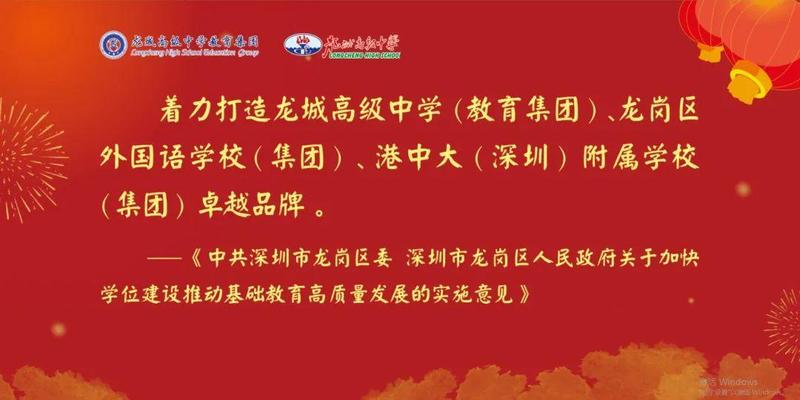 2月18日,龙岗区基础教育改革发展大会召开,龙岗区委区政府提出要着力打造深圳市龙城高级中学(教育集团)卓越品牌,发挥其示范引领作用,推动龙岗基础教育高质量发展。