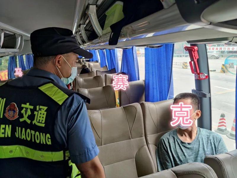 此时,前方一辆“熟悉”的大巴在执法蜀黍眼前闪过,执法蜀黍立即示意粤BZ5***大巴靠边停车,并分别对司机和乘客进行调查。