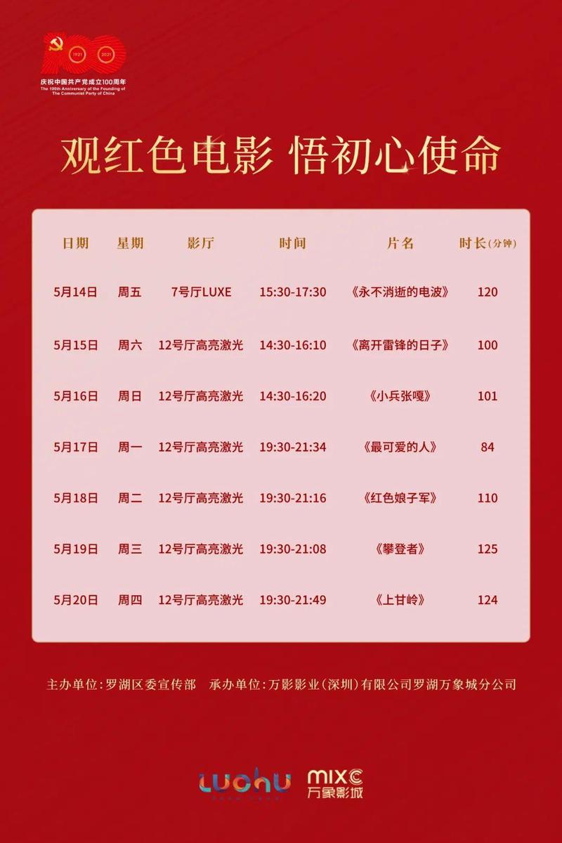 罗湖“红色电影周”等你来!七部红色主题电影免费看!