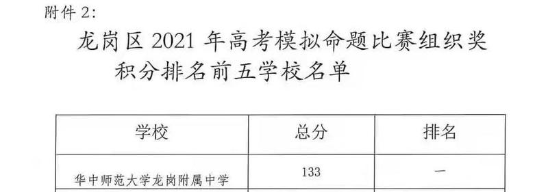 在刚刚结束的龙岗区2021年高考模拟命题比赛中,学校以总分133分勇夺龙岗区第一名,15名教师晋级深圳市高考模拟命题比赛。