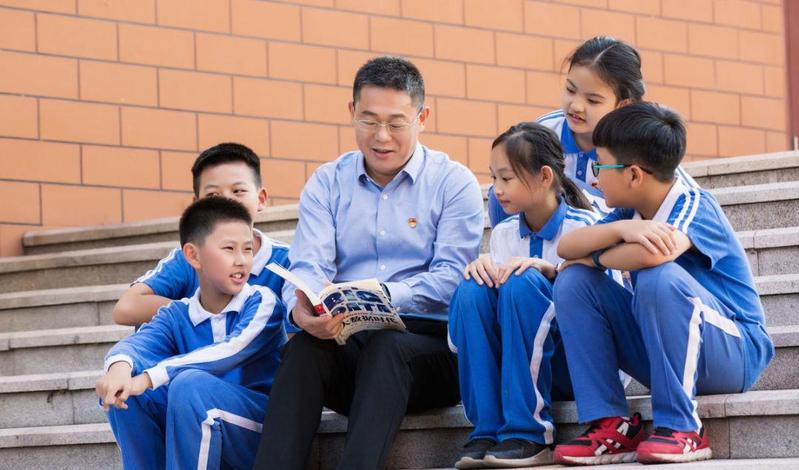 2015年,南山区教育局从南部片区优秀校长中选派张光富(中)交流到北部片区的西丽小学任校长。(西丽小学供图)