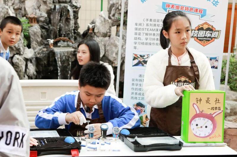 西丽小学开展了丰富多彩的社团活动,激发学生潜能。图为学校钟表社团课,学生在组装钟表。 (西丽小学供图)