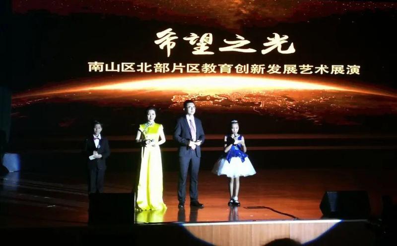 2018年6月,西丽小学师生同台主持由南山区教育局举办的“希望之光——南山区北部片区教育创新发展艺术展演”活动。(西丽小学供图)