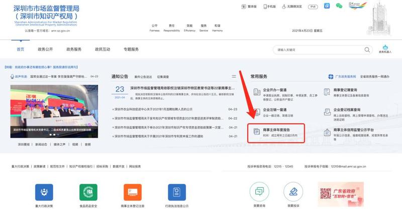 深圳市市场监督管理局通过深圳市市场监督管理局网站(网址: