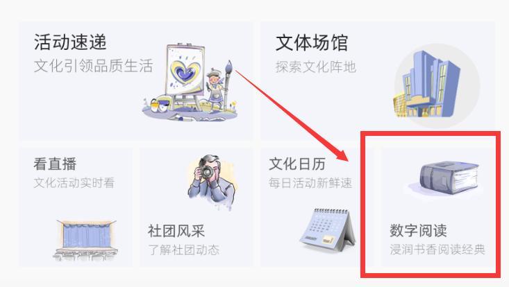 第二步:在首页中找到”数字阅读“,点击就可以找到数字资源库啦!