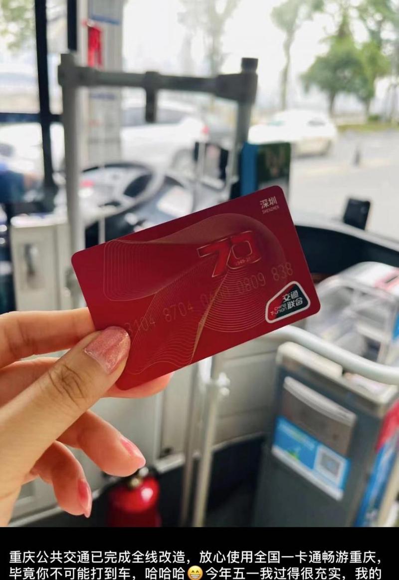 “这次五一出门旅游,我还带了有交通联合标志的深圳通卡刷卡乘车,毕竟可以畅行300余互联互通城市嘛,超级方便。”