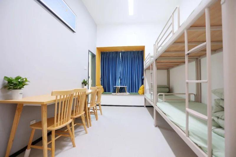 宿舍为标准四人间,室内设计简洁大方舒适,配以落地飘窗、实木书桌、清新小黄椅、简约衣柜,营造敞亮舒适的居住、学习环境。寝室空间采用休息、学习空间分布两侧布置的原则,体现人性化的设计。