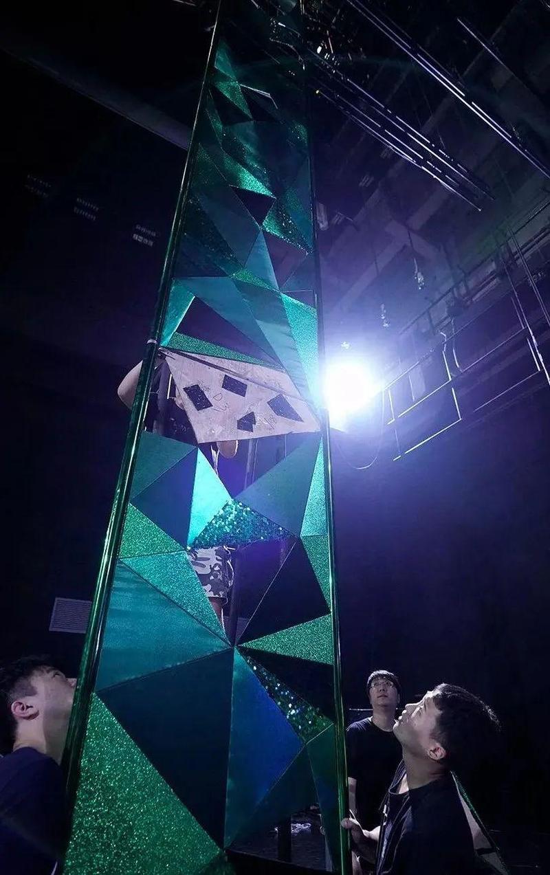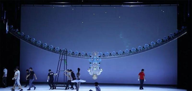 多彩的光是一种美、也可能是一种干扰——《珠宝》的灯光设计是配合舞美的呈现来营造一个画面感,让该闪烁的地方闪出来…… 因为整个舞台上所有的布景,全部都有高反光,而高反光容易造成炫光,炫光对人的眼睛很刺激,长时间的炫光会引起观众的不适,所以我们需要想办法消除不该有的反光,同时还要突出布景的质感。横向比较起来,这台戏的灯光设计比其他传统的芭蕾舞剧要更具挑战。另一方面,我们也在想办法利用炫光来做一些特殊的效果,特别是在《钻石》中用一些侧光打到布景上面,再反射到天幕、反射到舞台,反射到观众席中,这样就会使整个剧场沁润在光影效果中……也许当观众真正走进剧场的时候,会有一番中西审美融合下别样的舞台华丽与灿烂!”