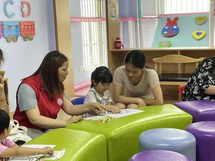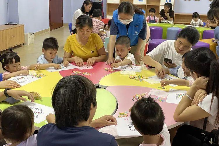 工作人员与亲子们一起做手工。
