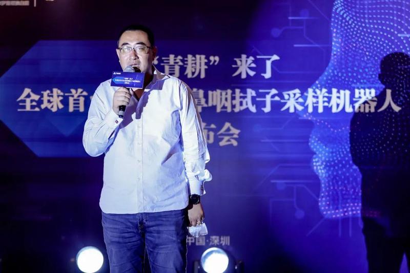 5月17日,全球首台全自动鼻咽拭子采样机器人“青耕”发布会举行。罗湖医院集团领导孔舒、黄伟明、林锦春、郭春江、熊奕、邓超干、以及杭州湖西云百生科技有限公司负责人刘芳德等参加了发布会。