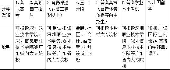多元出路,这里提供未来无限可能。学校为学生开辟多条深造渠道,多渠道升入高一级学校就读专科和本科。毕业学生可通过职业类高考、三二分段、自主招生、技能大赛获奖推荐等途径,或直接就读国际班出国留学。