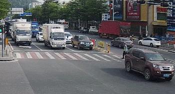 福中(徳)/怀德南路口通行的大型货车较多,因南出口仅有3条车道,大型货车由左侧掉头时转弯半径不足,无法一次完成掉头。