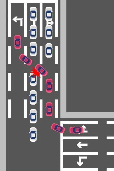 上游路口右转车辆在此路口需要左转,或者临近路口处有支路、匝道汇入主路的交通流以左转车辆为主时,若按照传统设置左转车道,会导致需要左转的车流横切多条车道,在路口处产生严重交织,从而引发交通拥堵甚至交通事故。