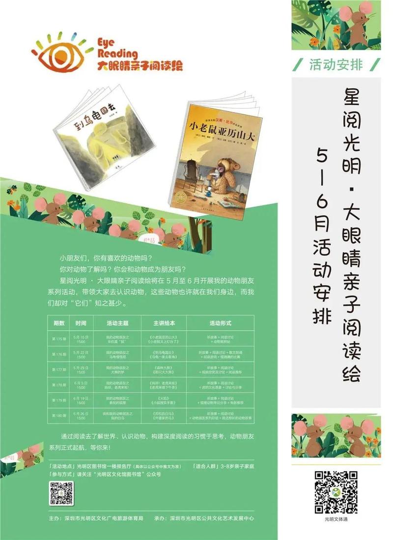 小朋友们,你有喜欢的动物吗?你对动物了解吗?你会和动物成为朋友吗?“星阅光明·大眼睛亲子阅读绘”将在今年的5月到6月,带领大家去认识动物,这些动物也许就在我们身边,而我们却对“它们”知之甚少。