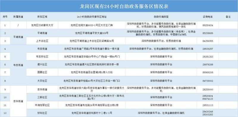 截至目前,龙岗区、街道、社区三级共建成52个“24小时自助政务服务区”,所有自助政务服务区都投放了深圳市政务服务一体机。