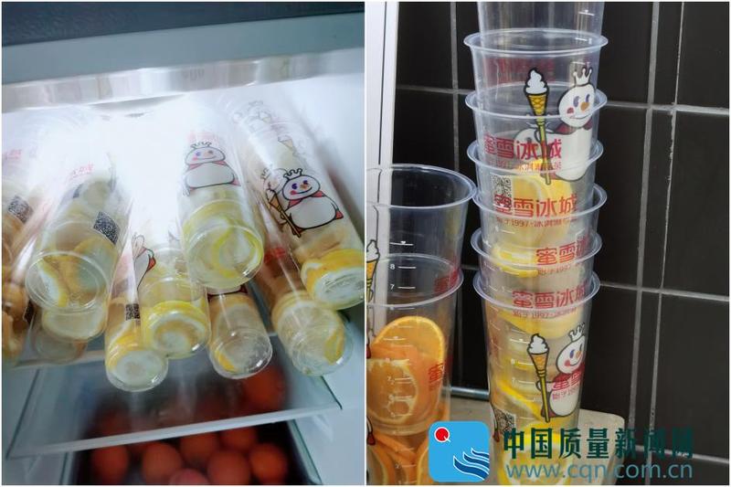 调查发现,在蜜雪冰城济南大观园店、武汉马湖商业街店存在使用过夜冰淇淋奶浆、切片柠檬、奶茶的现象。