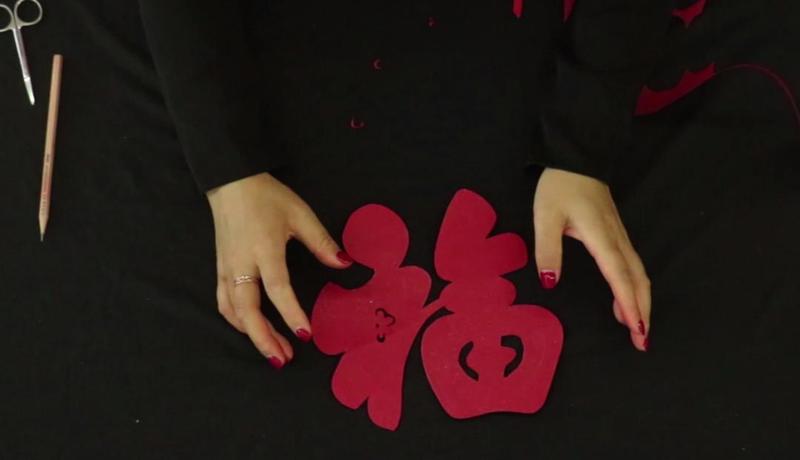 2、按造型开始剪裁(剪字时要注意文字的正反方向)。