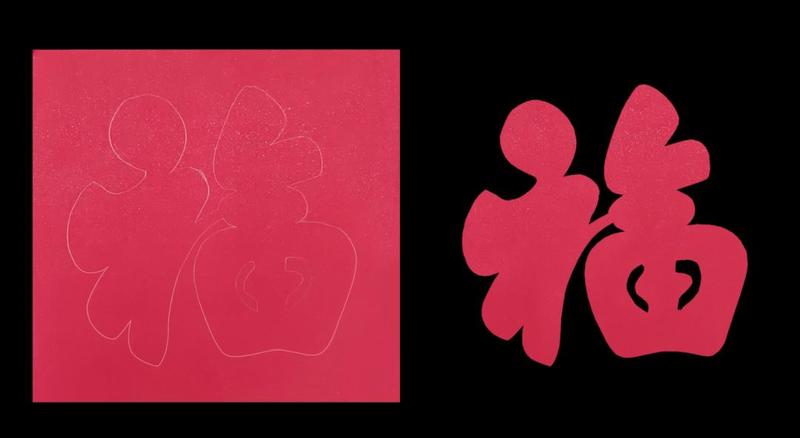 3、展开成品,简易版福字。沿着福字图案剪下来,然后翻转红字,一幅吉祥窗花“福”字图就出现了。