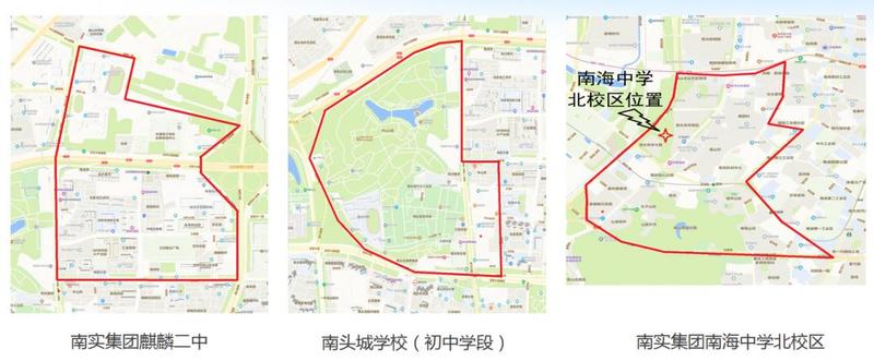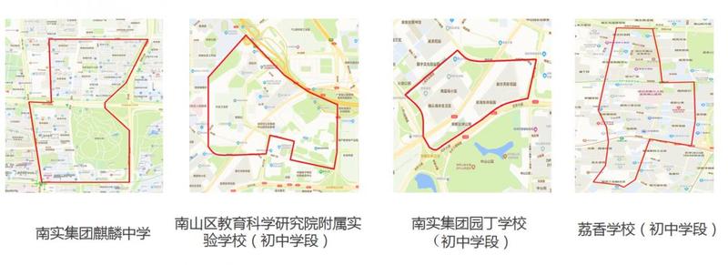 南实集团麒麟中学、南山区教育科学研究院附属实验学校(初中学段)、南实集团园丁学校(初中学段)、荔香学校(初中学段)等学区(招生范围)发生变化。