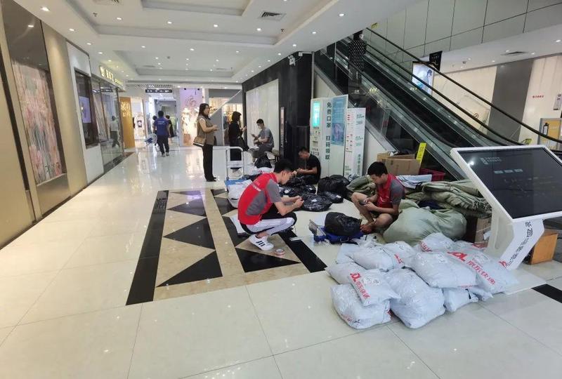 穿梭在荔秀街区的各大商场内,记者看到前来采购的顾客和买手络绎不绝,他们手提或用简易推车装着一些大大小小的黑色袋子,商场过道、店铺内也都堆着这样的类似“垃圾袋”的黑色袋子,这些黑袋子里可不是“垃圾”,而是即将运到全国各地的时尚女装。
