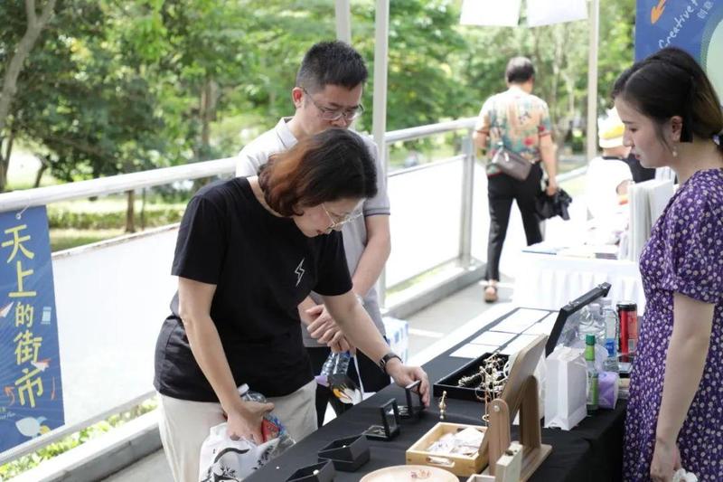 天上的街市以文化创意为宗旨,通过展现具有代表性的文创产品唤醒更多潜藏在内心深处的创意和灵感。在自由风景优美、人文环境舒适的坪山区中心公园内,市民们聚集在这里,可以以更加贴近的距离了解和触摸文创产品,通过趣味无穷的互动,感受到浓厚、新潮的创意氛围。