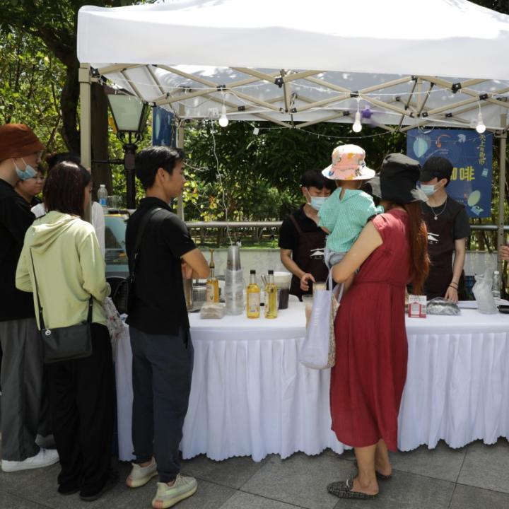 2021年5月22日上午,随着一阵响亮的鼓声,“天上的街市”2021坪山创意市集于坪山中心公园正式开市!