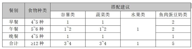 食物多样能保证营养丰富和充足,每餐准备的饭菜最好都能按类别分到格子里,不要空下任何一格。可以参考下面的搭配建议,先练习起来 。