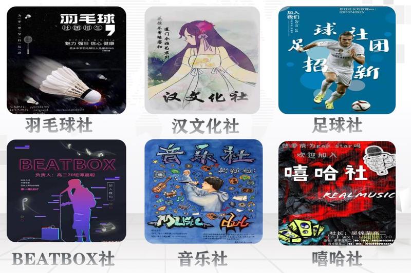 还有器乐社、音乐社、街舞社、文学社、