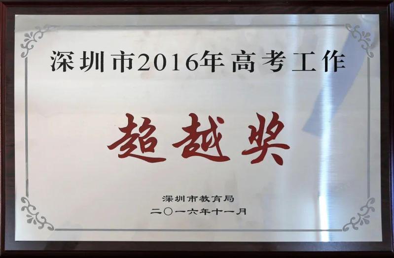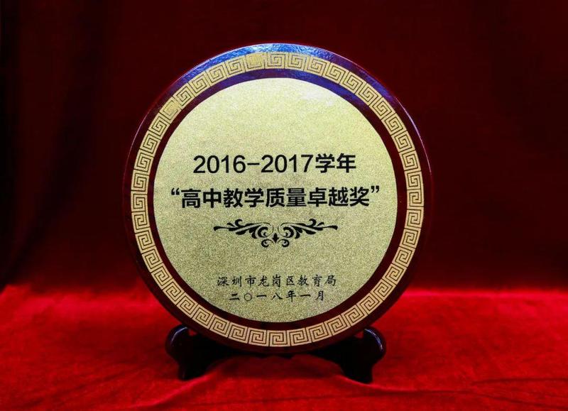 学校连续十年获得龙岗区“高中教育教学”先进单位荣誉称号,连续七年获得“深圳市高考工作先进单位”荣誉称号;2016年至2019年连续四年获评深圳市高考工作“超越奖”、龙岗区高中教育教学质量“卓越奖”,引领了龙岗民办教育的发展。