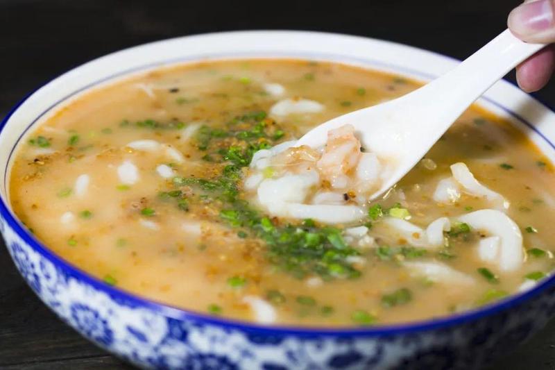 有人就把大米同绿叶蔬菜混合起来用石碓捣成粉,做成绿色的米粉,颜色嫩绿,十分好看,但是吃起来口感不好,而且容易煮烂;有人又在大米中加上糯米,并且以特殊工艺制成,吃起来口感滑爽,色泽也更鲜亮;后来又有人在汤中加入肉、海鲜等等,味道更加鲜美。成为大鹏所城里一种特有的美食。