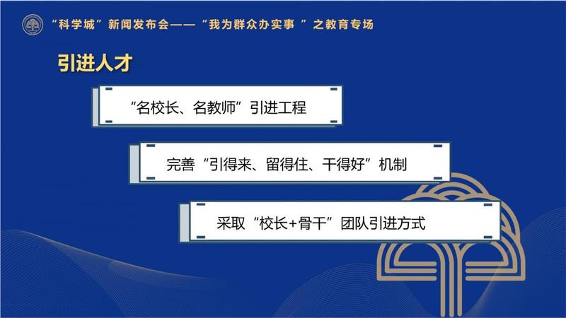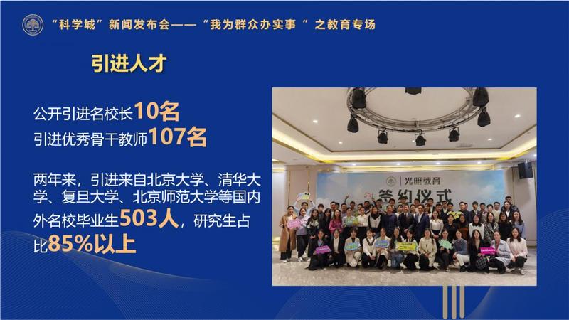 接下来,光明将继续加大力度引进深圳本土优质教育品牌入驻光明,不断扩展光明教育优质资源版图。在人才引进方面,光明将实施“名校长、名教师”引进工程,完善“引得来、留得住、干得好”的机制,探索采取“校长+骨干”团队引进方式,组成学校管理团队,让引进校长拥有强大的团队支撑。