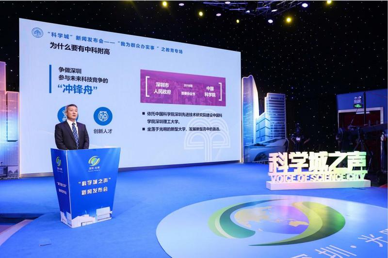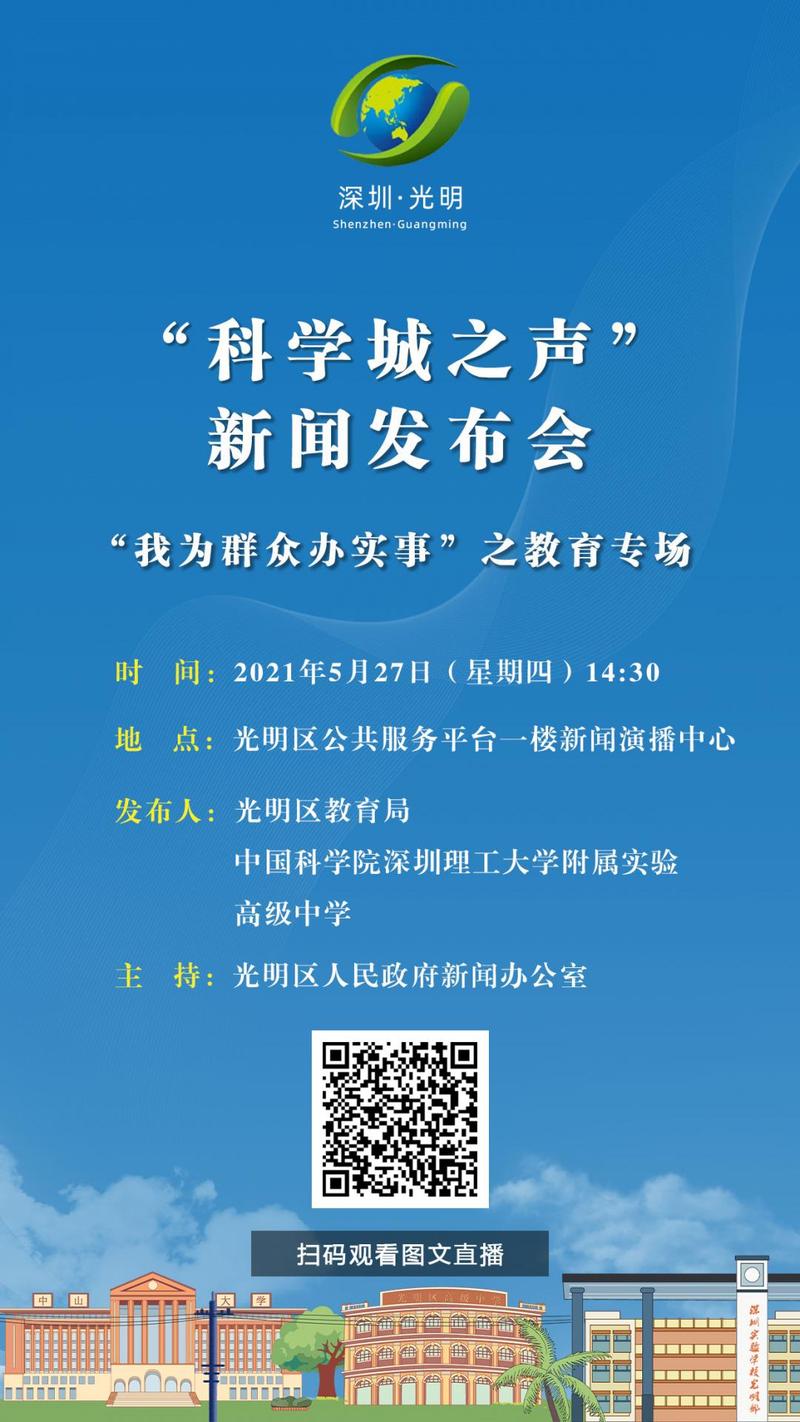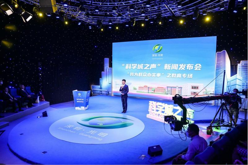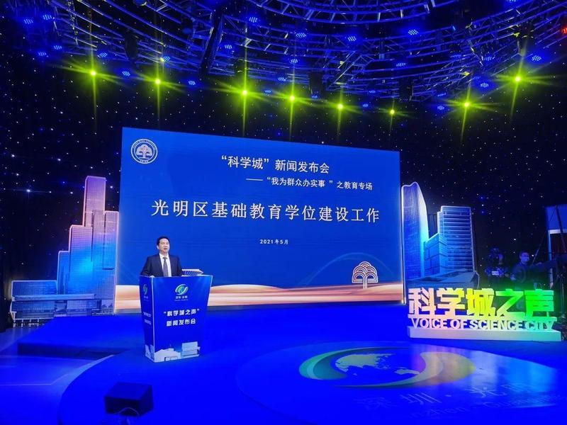 5月27日下午,光明区举行“科学城之声”新闻发布会——“我为群众办实事”之教育专场,全面解读光明学位建设、招生政策,以及中科院深圳理工大学附属实验高级中学(以下简称“中科附高”)办学特色,并现场回答记者、网友提问。区委宣传部分管负责人,区教育局、中国科学院深圳理工大学附属实验高级中学新闻发言人,部分区人大代表、政协委员、家长代表、媒体记者代表参加发布会。
