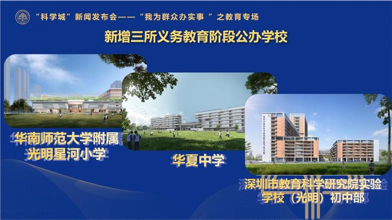 其中,仅2021年,光明就要建设1所区属公办高中——中国科学院深圳理工大学附属实验高级中学,新增高中学位2100座;新建3所义务段学校——华夏中学、深圳市教科院实验学校(光明)、华南师范大学附属光明星河小学,改扩建2所学校——玉律学校、公明第二小学,共新增学位7260座;计划开工建设幼儿园7所,其中,立项4所,实际建成3所,提供学位1080个。