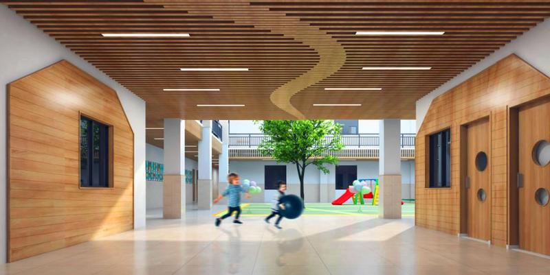 富润乐庭幼儿园位于坪山区马峦街道东纵路与沙新路交汇处东北侧,富润乐庭小区内,设计办学规模为9个班,由市直属梅林一村幼儿园承办管理。通过合理的功能布局和富有设计感的趣味空间,创造儿童成长与生活的重要空间,让孩子健康快乐地度过童年时光,不仅学到知识,而且可以从小接触集体生活。通过空间之间的相互联系贯通,激发孩子探索求知的天性,营造一个让孩子既能自主思考,又可以相互合作的儿童艺术空间。