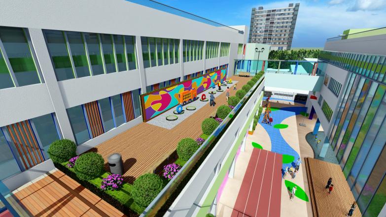 启思幼儿园位于坪山区石井街道横塘路28号,设计办学规模12个班,幼儿园场地合理地顺承并延伸了建筑空间,丰富了教师-学生-家长的教学、户外学习、交流等活动行为,启发了学生。三种颜色系列---蓝、绿、橙,像孩子一样自带活力与变化的属性,在生机勃勃的校园中赞颂成长的伟大。