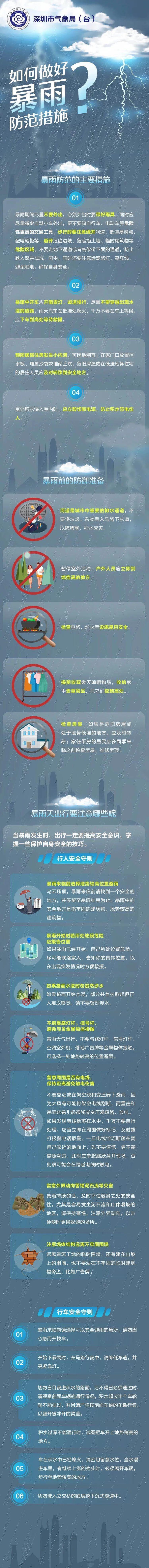 3. 强降雨易出现在凌晨至上午,影响周末及早高峰时段,请大家及时关注深圳气象台发布的最新预警预报信息,出行注意交通安全。