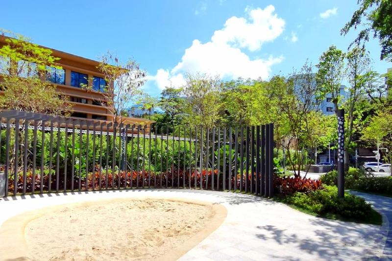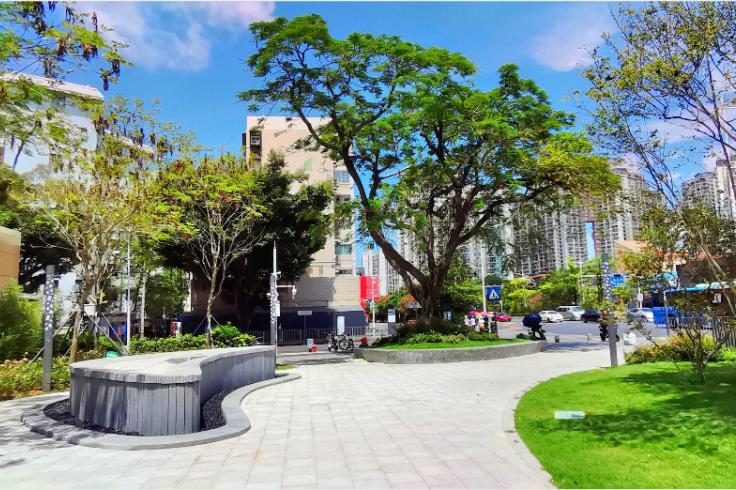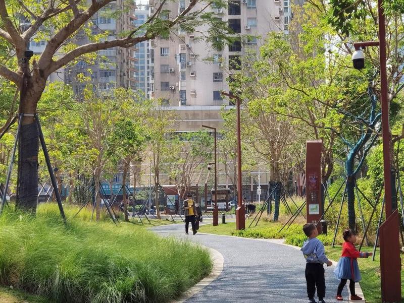 公园面积约3500平方米,原为蛇口招商局移交地,荒废荔枝林地。南山城管和综合执法局因地制宜,充分利用原有设施及条件,通过清理重塑地形,梳理荔枝林,布置游乐健身、休闲观景等节点,打造成市民可进入的小游园,为市民提供舒适的休憩游园场所。公园虽不大,却有草坪、座椅、儿童游乐设施,处处体现儿童友好型。