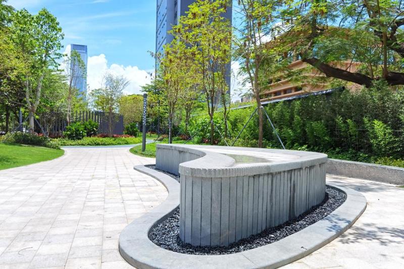 公园位于南海大道与登良路交界东南侧,总面积约12800平方米,原为地铁施工占用地块。项目以漫步林间为核心理念,公园环形生态慢跑道使人穿行在草坪与花林之间,为社区提供绿色的健身场地。