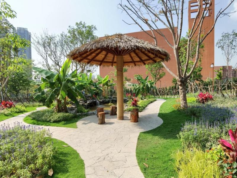 该公园面积约2.5万平方米。项目以古朴风格为主,通过对场地内原有树木的保护,布置特色游园景观,设有公共厕所等设施。“项目紧邻正在建设的区中医院,下一步计划以药文化为主题,着重体现中医药历史文化底蕴,建设基于生态、文化、功能于一体的‘后花园’。”南山城管和综合执法局工作人员说,这也是公园取名“本草公园”的缘由。