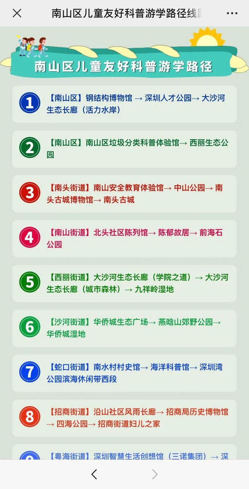南山区“儿童友好科普游学路径”电子地图