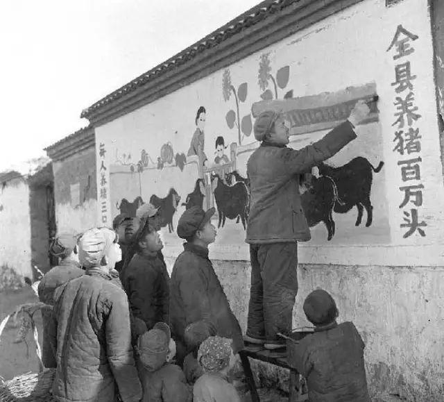 中华人民共和国成立以来,更多的专业艺术家和美术爱好者被派赴农村,参与到书写标语和绘制宣传性壁画的活动之中。如1958年初,著名画家古元与人民美术出版社的25位编辑和画家分别前往河北遵化、江苏高邮等县,深入村社绘制壁画。应遵化县委要求,古元据该县拟发的大跃进标语口号绘制了每幅长达几米至十几米的宣传壁画。而河北昌黎县还组织起一支由美术教师、民间艺人、俱乐部骨干为主体的美术创作队伍,共2000多人,在半个月的时间里创作壁画6.5万多幅,成为全国著名的“壁画县”。当时的一首诗歌更描述了壁画的普及程度和社会功能:“社会主义新壁画,新农村里把根扎。农民热爱新壁画,村村都把壁画画。跃进车,跃进马,处处都是跃进画。新壁画,会说话,教育人心向灯塔。”这些艺术家和美术爱好者的行为是国家对于农村社会公共领域占领的一种表现——这些壁画不在寺庙内而在建筑临街的外墙上,题材上也不是宗教的神祇和传说中的故事,而是对于国家的政策和方针的图解,因此无论在空间形式还是在内容上,都堪称是中国壁画传统的革命。