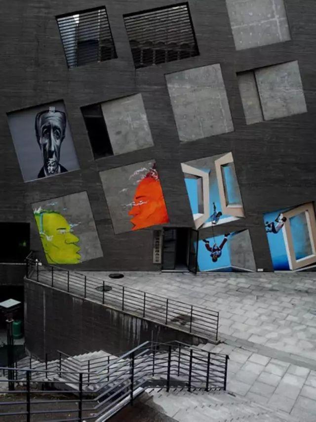 大芬美术馆的外墙强调的是平面构图的抽象特征,而非具有明显光影效果的雕塑感。方形或矩形的基本形态为画框整体的构图的抽象特征,而非具有明显光影效果的雕塑感。方形或矩形的基本形态为画框整体的构图带来了统一性和秩序感,但方框大小的变化和斜置又为这一构图加入了任意性和随机性。不同于建构论和表皮论对使用者参与的排斥,按照建筑师的预想,大芬美术馆的外墙将是一个政府许可、公众参与、建筑师与艺术家之间互动交流的领域,因而体现了一种包容和开放的姿态。大芬美术馆自觉地将自己作为公共媒介/载体,在表现自己的同时也主动允许使用者和公众的参与和表现。