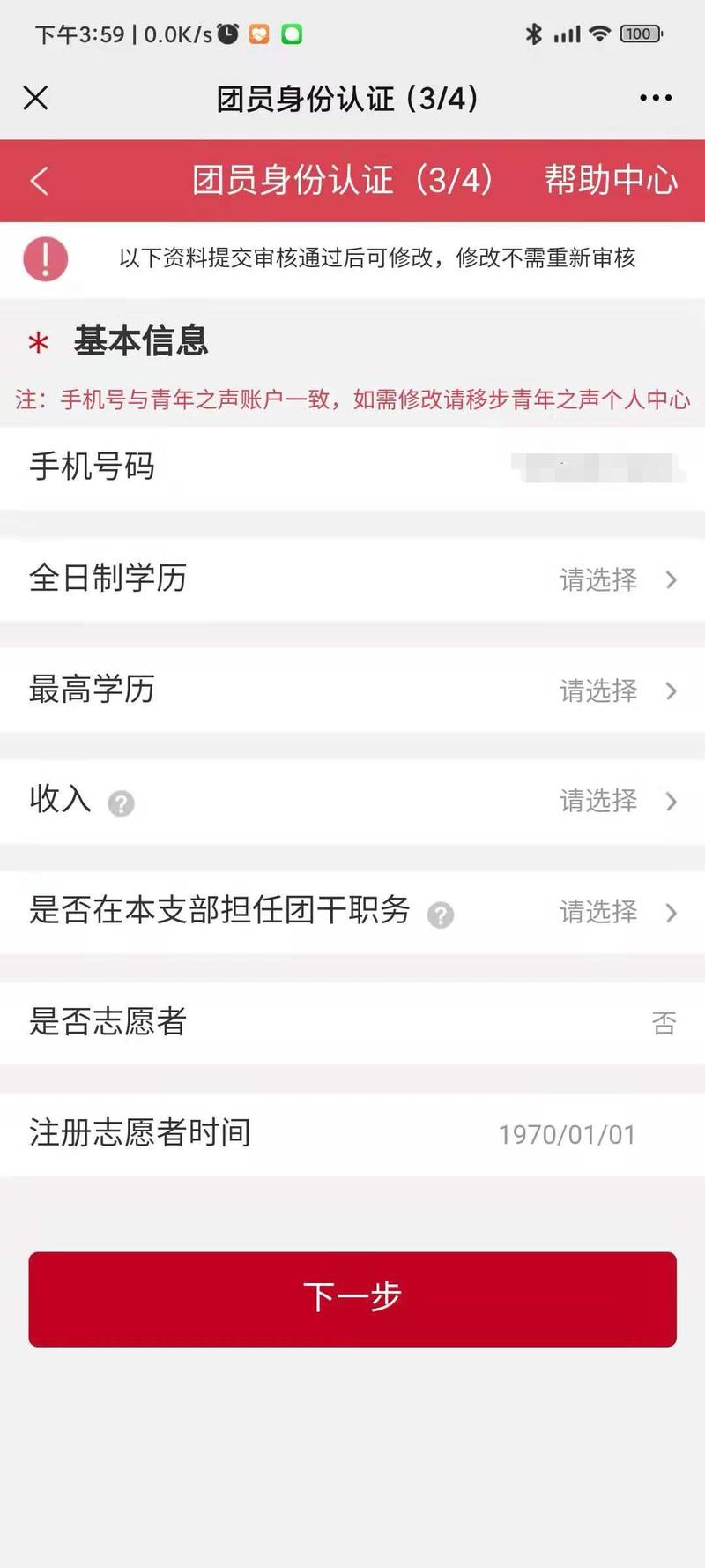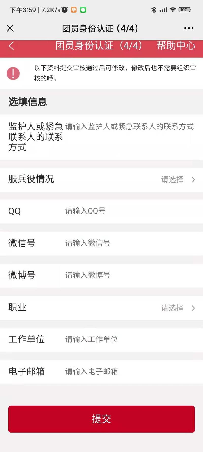 (2)根据系统流程据实填写个人信息,点击“提交”,等待转入团组织审核。