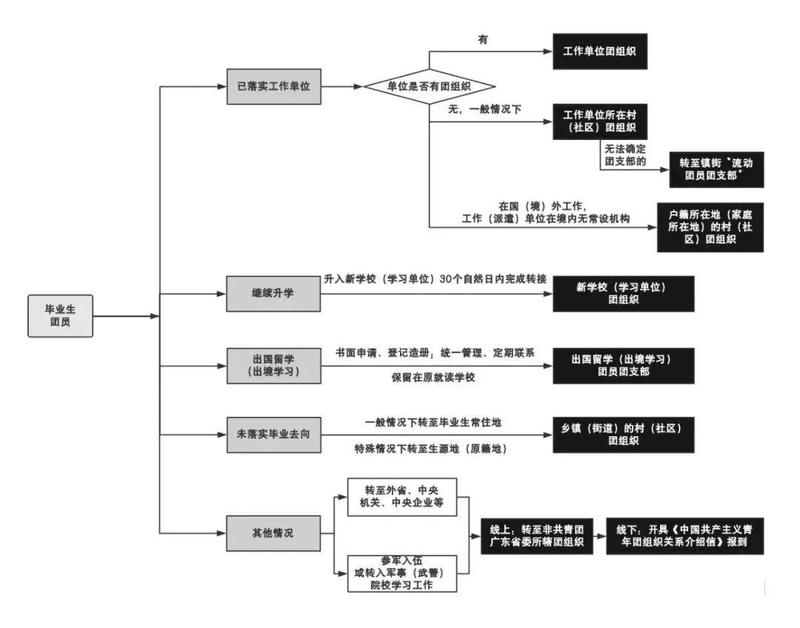 申请转至“非共青团广东省委所辖的团组织”,并准确填写团员去向;其余转接手续按照线下组织关系转接流程处理。