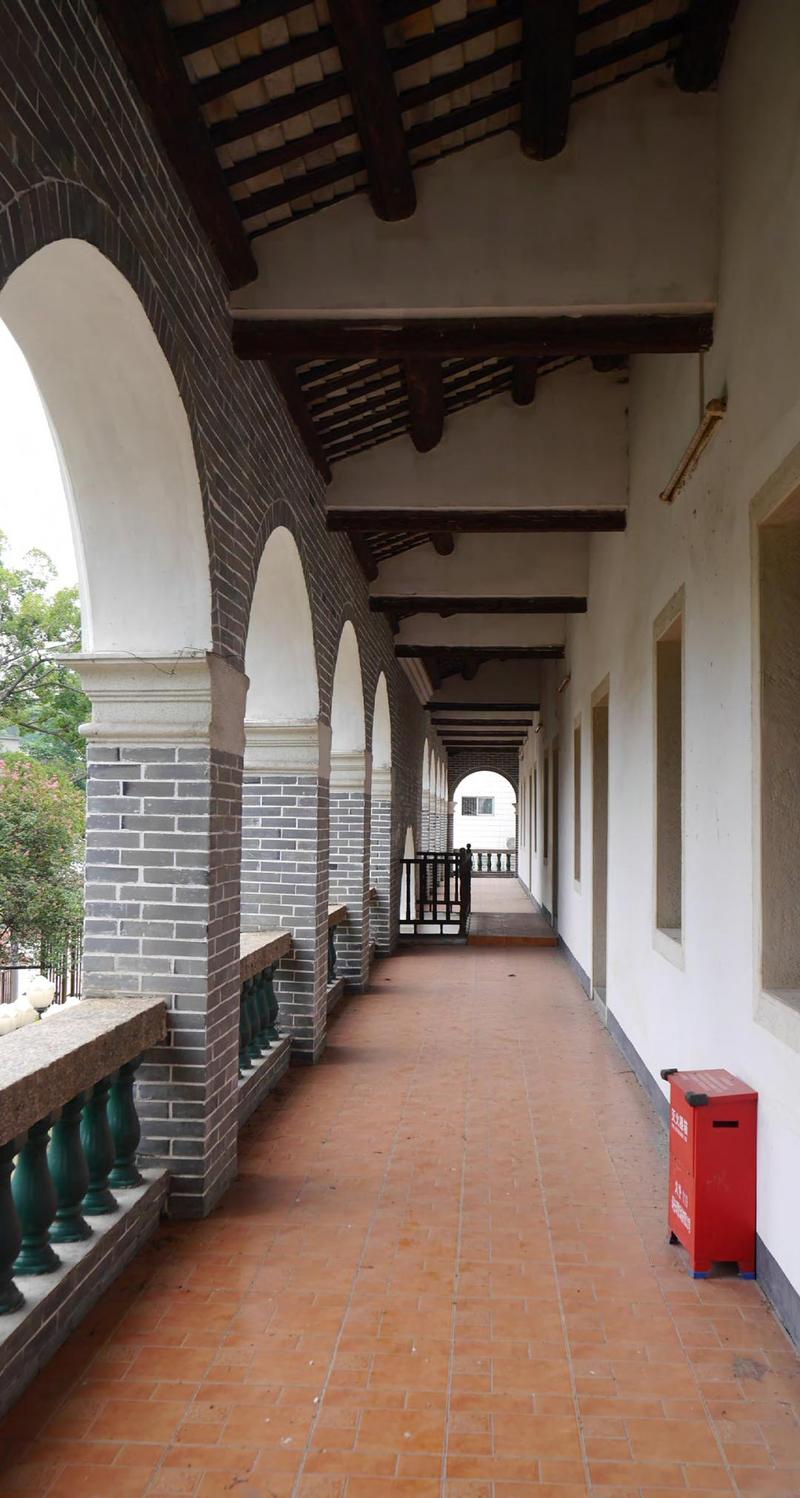 一进校门,便可以看到一座拱门门楼,这是学校原址的大门。穿过拱门,可见一栋两层高、中西合璧式的楼房矗立眼前。