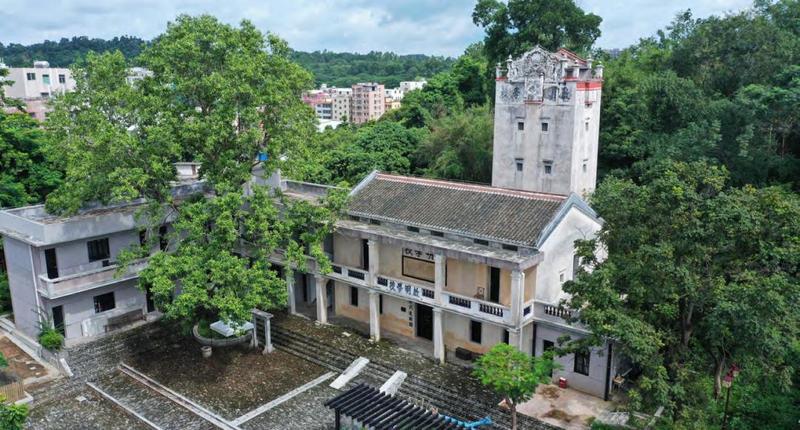 曾经的振能学校,如今已经成为观澜中学的一部分。站在校门前,正对面中西合璧的两层建筑振能楼和写着”振能学校“的高大炮楼引人注目。
